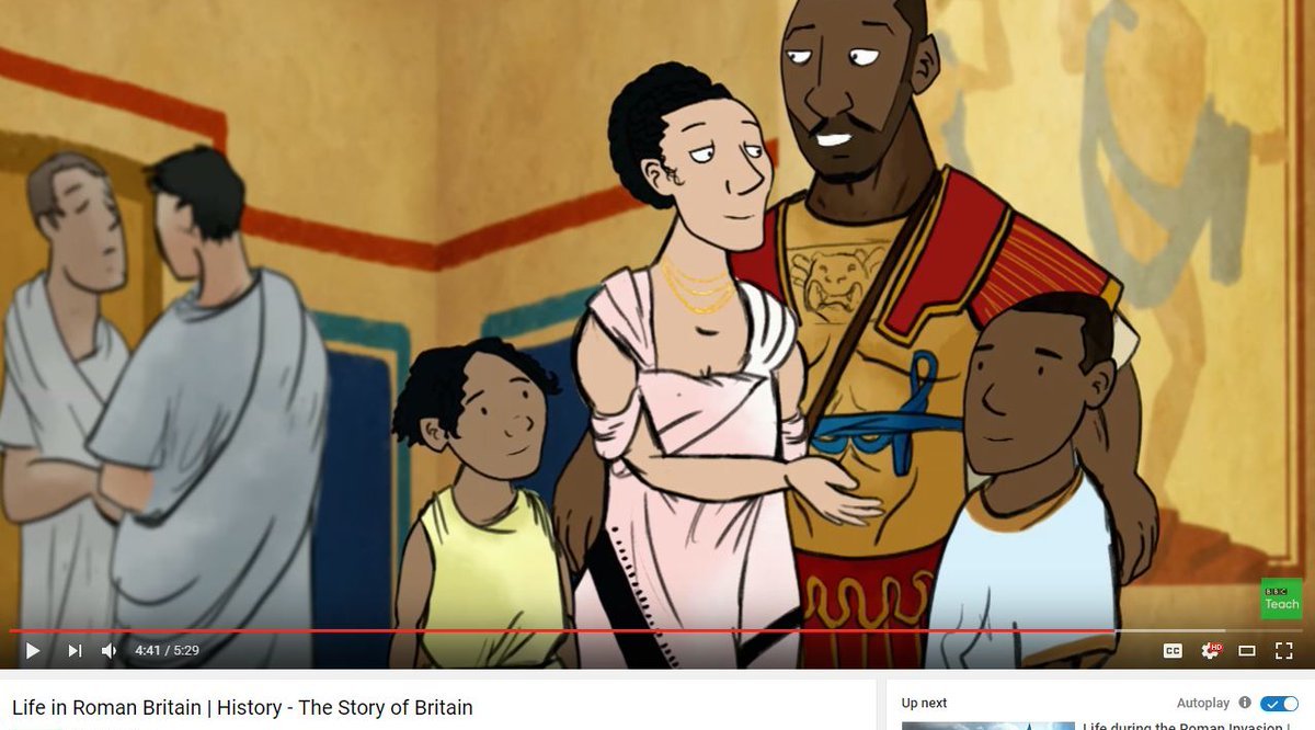 To be convincing, what would be needed to make the BBC cartoon and caption true rather than politically correct propaganda aimed at children would be a sub -saharan African genetic profile from a Roman era grave in a non-urban environment in Roman occupied Britain, that had an isotope analysis that showed the person had been raised in Britain. Some evidence of this has been found in non-sub-Saharan ancestry remains in the urbanised areas of Roman Britain, but not in the rural areas where the overwhelming large numbers of indigenous Britons lived.