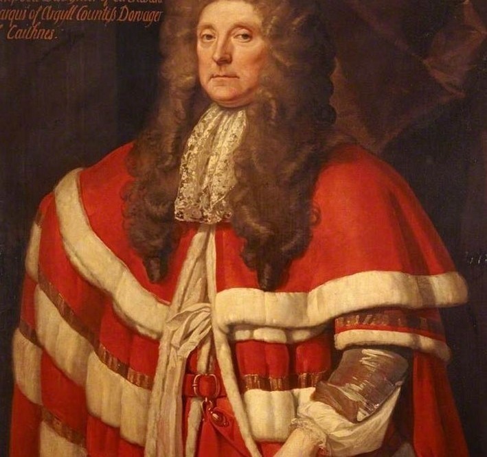 He received a large amount of French money in return for pledging 1,200 men for the Jacobite cause. In fact he only sent a small force of 300 men, and withdrew them after the first inconclusive battle with the forces of the crown at Sheriffmuir, where the Jacobites were stopped in their march on Perth, by another a relation of Slippery John, another John Campbell, the 2nd Duke of Argyll (pictured below), and incidentally “Lord Lorne”. Slippery John died two years later in 1717, and so avoided being tried for supporting the uprising.