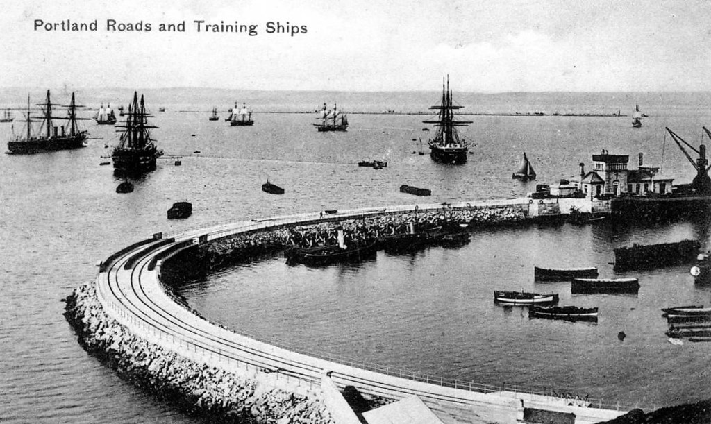 His time at home was short and he appears to have taken off again soon after, this time on a fishing boat, this doesn’t last long, as in January 1900 Charles turns up at Portland Dorset (below)at the tender age of sixteen where he is enrolled as a “Boy 2nd Class” in the Royal Navy. We know he had been employed as a Fisherman as this is recorded on his Naval record. We also know that he is only 5ft 2ins with the usual Jossa brown eyes and black hair, his complexion is initially recorded as “Fresh” but once he is and adult it is recorded as “Dark” which would imply that he tanned easily and possibly had a dark stubble.