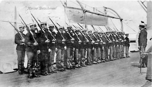 In November 1909 Charles is in San Francisco California, enlists in the US Marine Corps, and is transferred to Mare Island, the first US Naval Base on the Pacific Coast, and still the only major US Navy shipyard and US Marine training depot on the Pacific Coast in 1909. Charles must have looked like a perfect recruit to the US Marine Office in San Francisco; several years of experience in the British Navy, and an ex-Merchant Seaman who had travelled across the Atlantic and down the Pacific Coast of Canada and the USA, the small, strong, and dark complexioned “Limey”, with arms covered in Naval Tattoos (crossed flags, and clasped hands across a heart) must have presented a very different figure from the fresh faced farm boys who normally went through the Recruiting Office.