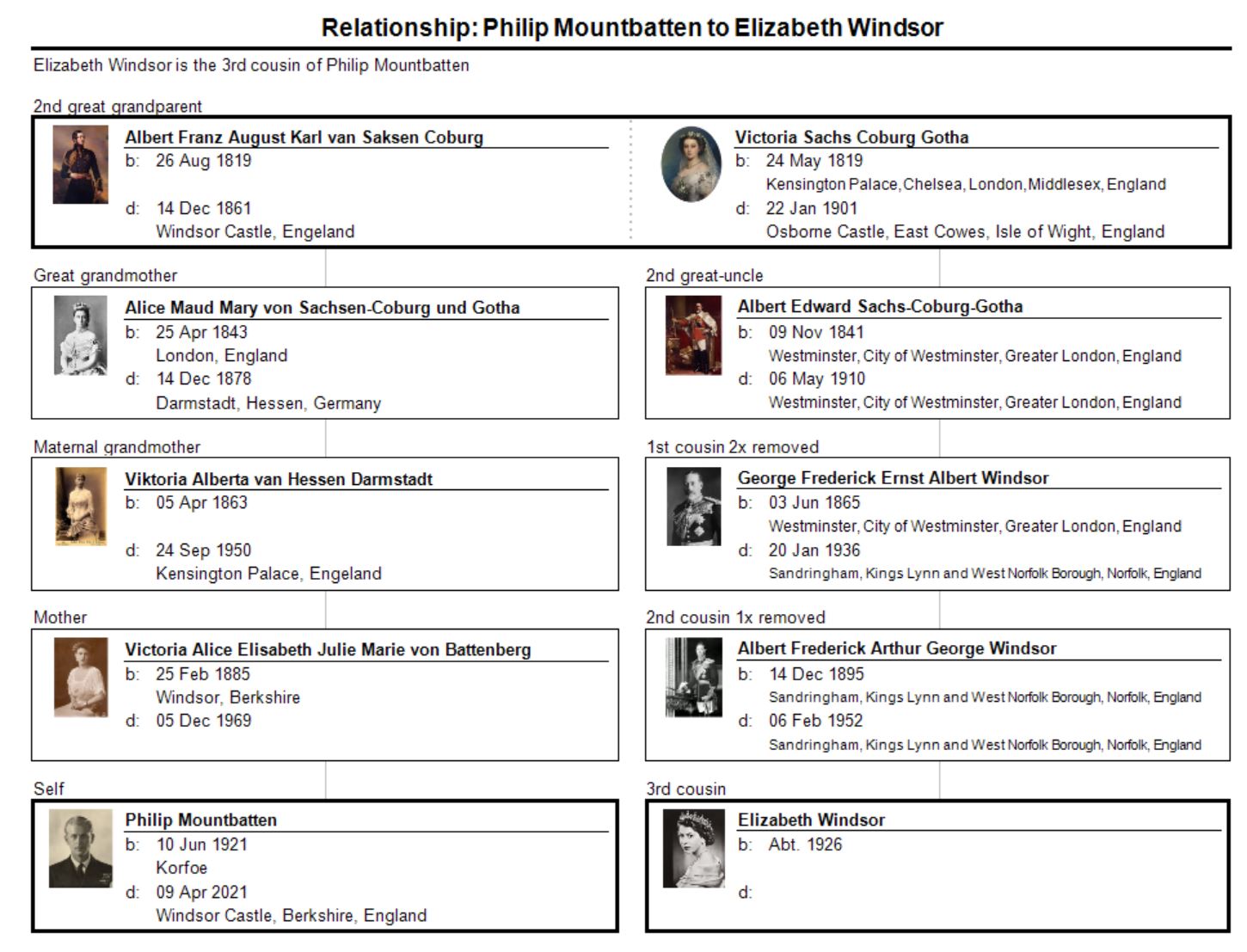 By Paul McNeil Posted on April 10, 2021 Prince Philip For those interested, here’s how the Queen and Prince Philip were related prior to their marriage. Share this: Click to share on Facebook (Opens in new window) Facebook Click to share on X (Opens in new window) X Click to share on LinkedIn (Opens in new window) LinkedIn Click to email a link to a friend (Opens in new window) Email More Click to share on Reddit (Opens in new window) Reddit Click to share on Tumblr (Opens in new window) Tumblr Click to share on Pocket (Opens in new window) Pocket Click to share on Pinterest (Opens in new window) Pinterest Like Loading... Related