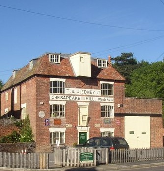 Many of timbers went to builders in Portsmouth, but a large number were sold in 1820 to a Mr John Prior for £200. John Prior was a Miller from Wickham in Hampshire , who pulled his old Flour Mill down, and used the timbers of the USS Chesapeake to build a new mill at Wickham. The Mill was built in proportion to the size of the timbers: The deck timbers were 32 feet long and 18 inches square and were placed unaltered horizontally in the Mill to support floors, walls, and ceilings. The Purlins of the deck were 12 feet long and used unaltered for joists.
