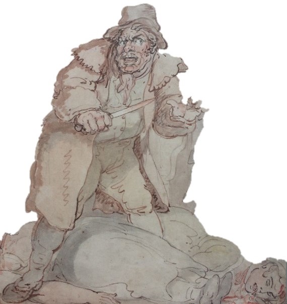 Also travelling the same road was a man named Samuel Thorley. He was a surly older man (aged about 58), ‘of very furious temper and dangerous to affront or banter’. Samuel Thorley generally worked as a Butchers’ Follower meaning that he was untrained and too old to be an apprentice, so he cut and jointed carcasses with cleaver and butcher’s knife ready for the finer cutting and dressing of the meat by the butchers.