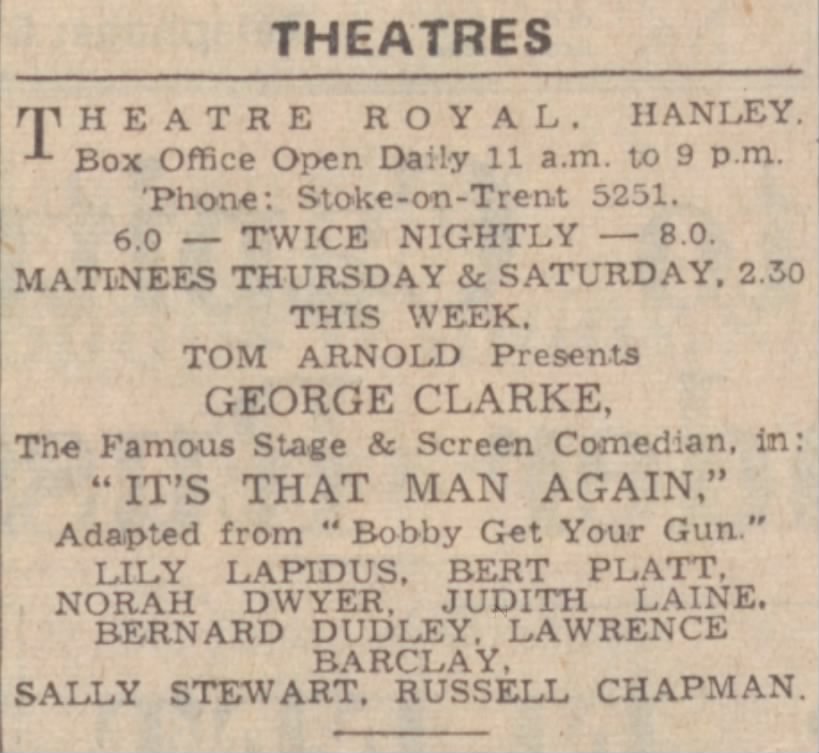 “It’s That Man Again” or ITMA as it came to be called, was a popular BBC radio comedy program from 1939 to 1949. The show featured Tommy Handley in the central role, with a cast of characters that included the bibulous Colonel Chinstrap, the charlady Mrs. Mopp, and the incompetent German agent Funf, and also George Clarke as mentioned in the show in Hanley above. The program was known for its fast-paced humor, satirical take on wartime regulations, and use of sound effects. The show included various songs and musical interludes performed by the cast and guest artists. These musical segments were an integral part of the program, adding to its entertainment value and helping to break up the comedy sketches. Just possibly the Durber girls were part of this hit programme, when it toured, the timings and people involved could support this, and to add to the intriguing possibility ITMA made a recording for BBC Radio from a “Midlands Factory” in 1944, were Hilda or Doris in the chorus?