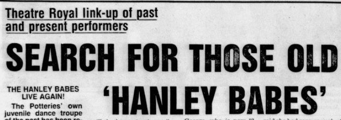 On Friday 18th November 1983 to mark the recommencement of Pantomime Performances at the Theatre Royal, the Staffordshire Weekly Sentinel ran a piece on behalf of the Theatre who were trying to get previous generations of “The Hanley Babes” back together. The Hanley Babes were a group of Chorus Girls, first known as “The Pottery Kids” who performed at the theatre from the early 1930s onwards. What caught my eye in the story was the mention of Hilda and Doris Durber as two of the girls, interesting as Durber is a fairly unusual name, and is prominent in Robbie Williams’s family tree.