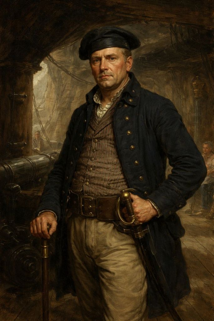 The Master at Arms of a Man-of-War, was the ship’s policeman and enforcer of discipline, acting under the authority of the Captain and first lieutenant. John would have enforced naval regulations, using the ship’s Corporals to prevent drunkenness, the, fighting amongst the crew, neglect of duty, and Desertion attempts. John would also have been responsible for the ship’s prison- the Brig, and any prisoners in it, as well as arranging for floggings and other punishments to be carried out in line with naval rules. During combat he would have been responsible for below deck discipline ensuring men did not desert their posts. He was more likely to have been feared on the ship than liked. Not a man to be trifled with.
