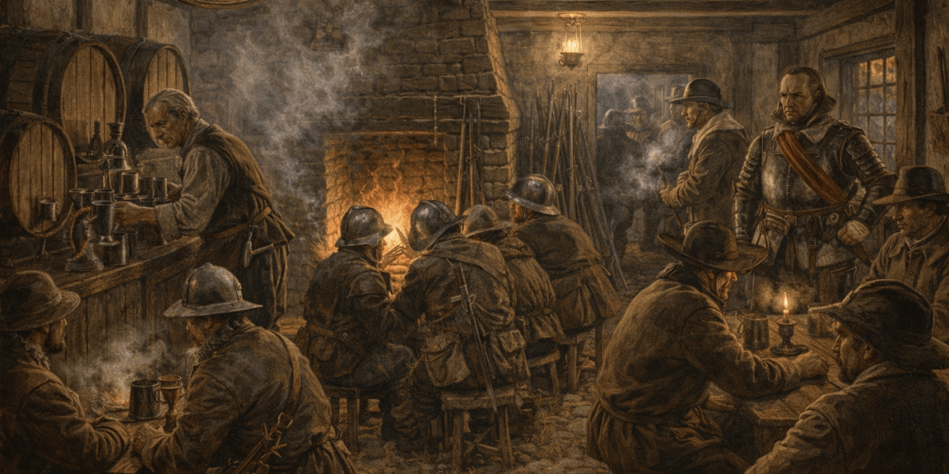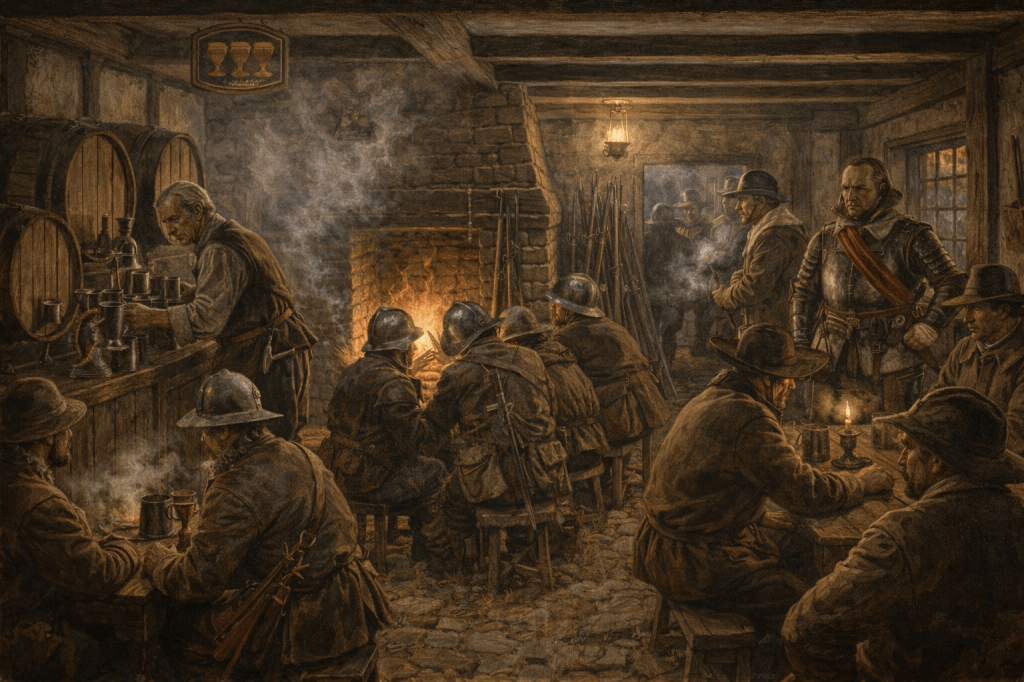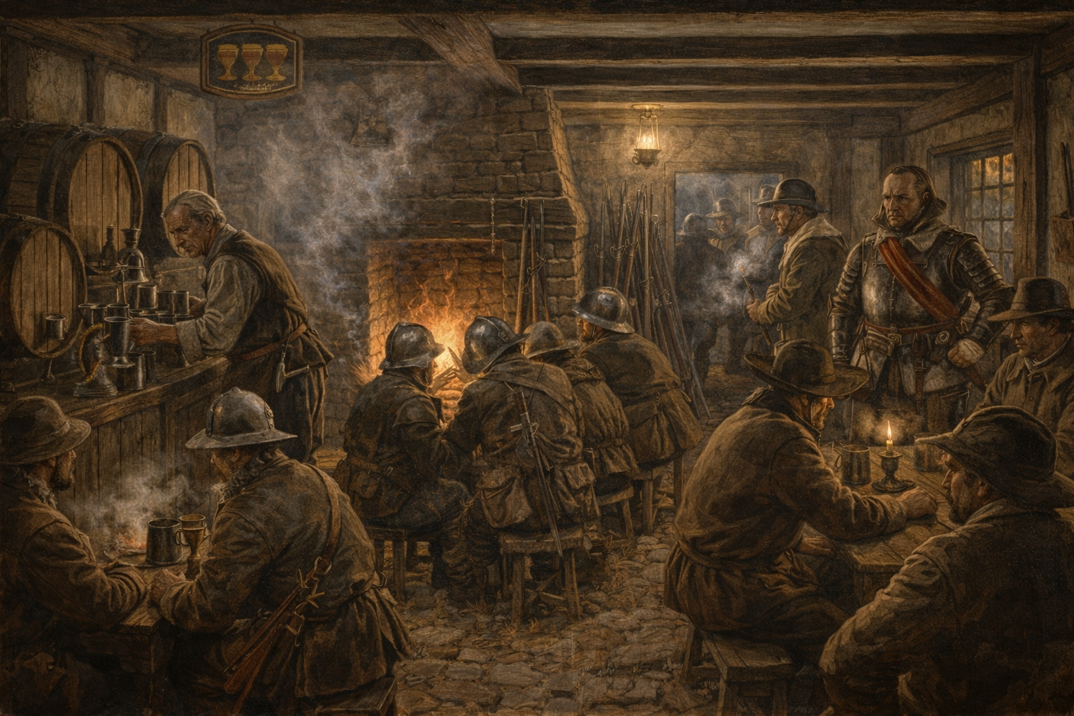 For the Wigges, the war meant militia musters for the men, forced loans, and the constant fear of billeting of rough soldiers in their homes and at the Inn. Soldiers tramped through Stockbridge, arguments about loyalty and religion broke out, soldiers drained the people’s provisions into their own bellies. The war was not fought in Stockbridge, but it was felt there — in the empty barrels, the broken doors, the unpaid bills, and the uneasy silence after the troops moved on.