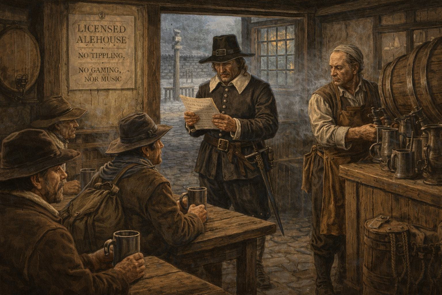 From 1650 being drunk, serving a drunk person, allowing drunkenness on the premises, and allowing “tippling” (hanging around drinking without cause) would lead to fines for both the drinker and landlord, as well as imprisonment and public whipping. Other than the punishments most of these laws are essentially still in place today, and seem pretty reasonable.