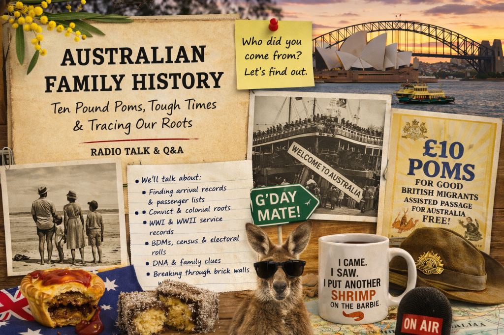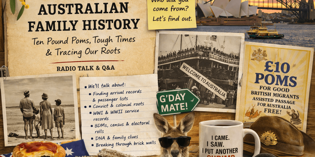 Want to know about tracing family in Australia? Tune in to the Katie Martin show on @BBCRadioSolent around 10.40 today, where I’ll be giving some advice. Family Trees and Genealogy tips this morning.