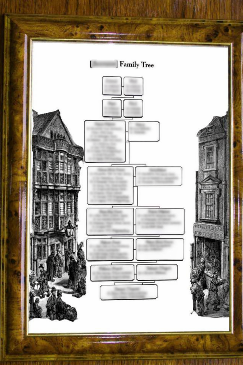 This gives an A4 sized framed tree, plus a report on the facts we find out (usually 25-50 pages). This goes back through direct ancestors in a single surname line. It usually takes 1-2 months but depends on what is found.